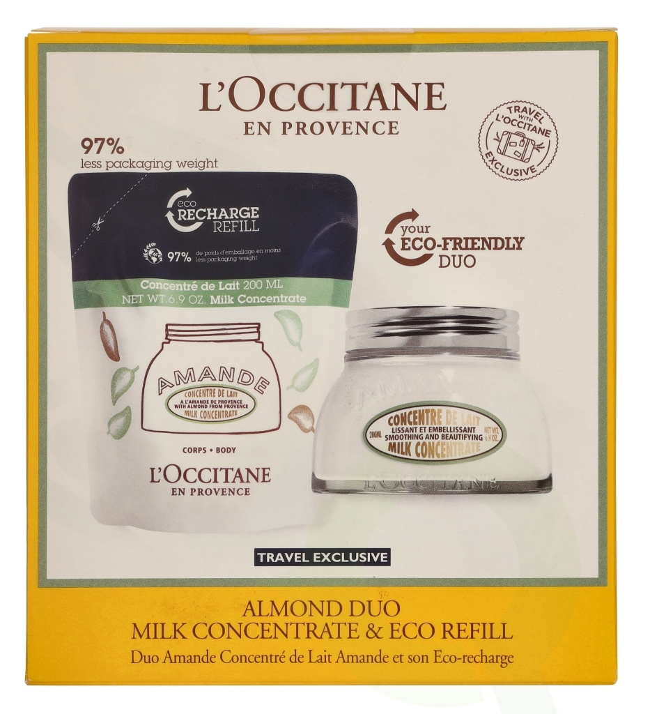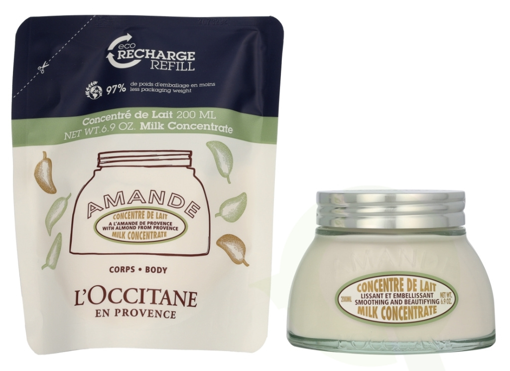 L'Occitane Almond Milk Concentrate Duo Set 400 ml Milk Concentrate 200 ml/ Milk Concentrate Refill 200 ml