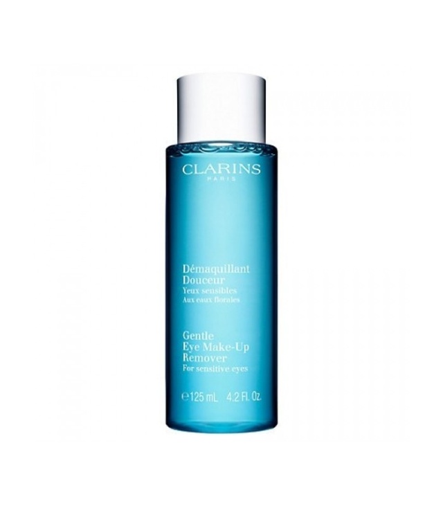 Clarins Gentle Eye Make Up Remover är en mild, 100% vattenbaserad formula som noggrant och varsamt tar bort lättare och vattenlöslig make-up på ögonen. Clarins Gentle Eye Make Up Remover har vårdande egenskaper: stärker ögonfransarna,återfuktar och vitaliserar huden omkring ögonpartiet. Innehåller bl a extrakt av organiskt rosvatten, blåklint och kamomill. Dermatologiskt och oftalmologiskt testad.