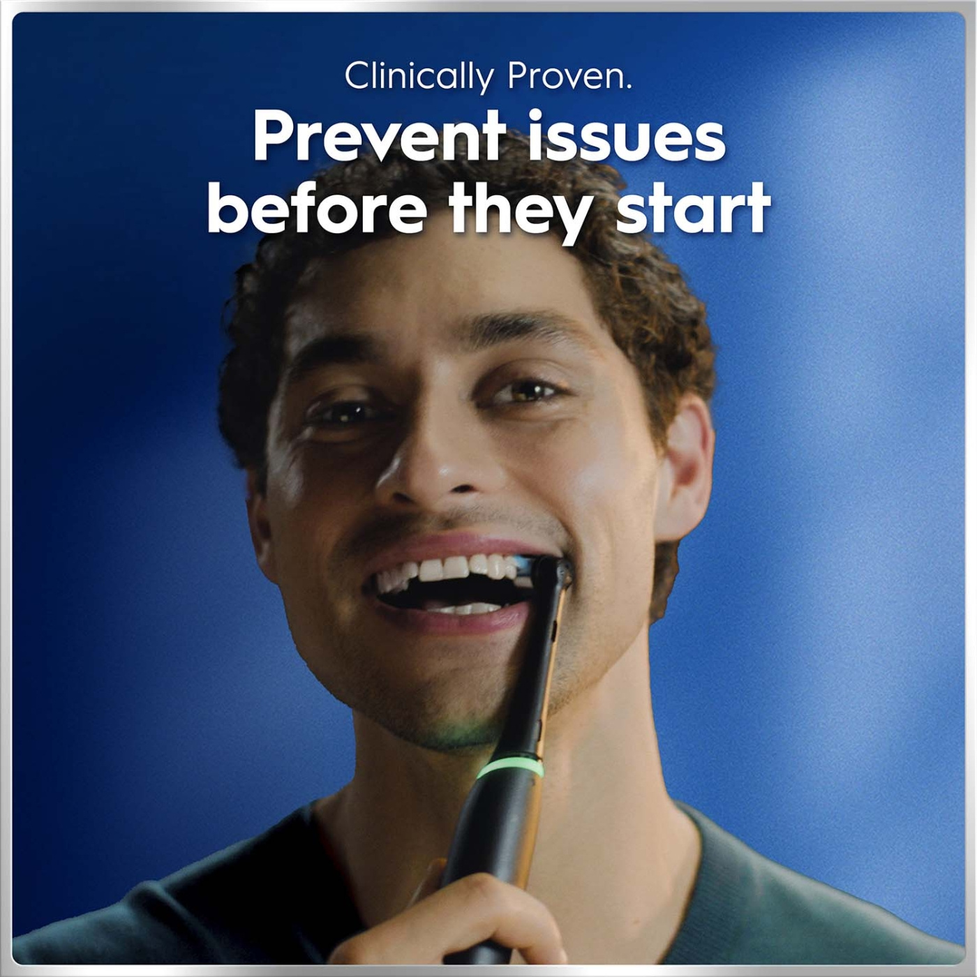 Kliniskt bevisad teknik. Utformad för att förhindra problem innan de uppstår. Ladda ned Oral-B-appen för att spåra tandborstningstid och täckning så att du aldrig missar något område. Synkronisera med Apple Health-appen för att spåra din genomsnittliga borstningstid. Ersätt dina borsthuvuden var tredje månad för bästa resultat.