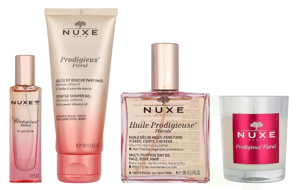 Nuxe La Fete En Rose Giftset 275 ml Huile Prodigieuse Florale 100ml/Prodigieux Floral Shower Gel 100ml/Prodigieux Floral Le Parfum 15ml/Prodigieux Floral Candle 60gr