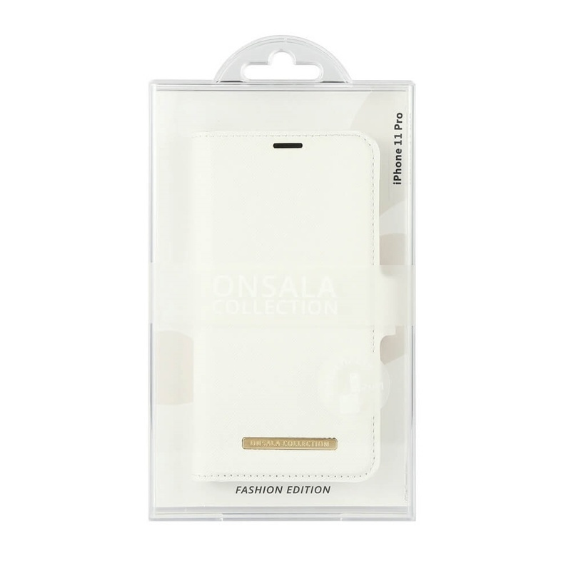 ONSALA COLLECTION Plånboksväska har två kortplatser och en sedelficka. Ett magnetspänne håller plånboken stängd. Det finns hål för högtalaren för konversation med stängd väska. Det finns också ett hål för fingret för att enklare ta ut ett kredikort. Din smartphone skyddas i ett magnetskal som även kan tas ur plånboken. Telefonen kan då även laddas trådlöst i skalet, 15w laddare rekommenderas.