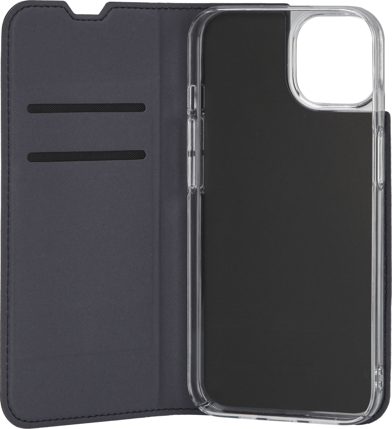Ett extra gångjärn på locket gör att fodralet kan vikas till ett bekvämt horisontellt ställ för din telefon. Stativet gör att du kan njuta av t.ex. film utan att anstränga händerna.