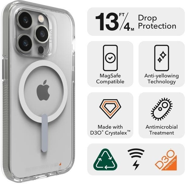 Crystal Palace Snap fungerar med Apples MagSafe-laddningssystem. Crystal Palace Snap-fodralet har magneter så att laddaren snäpper på plats och justeras perfekt för snabb trådlös laddning.