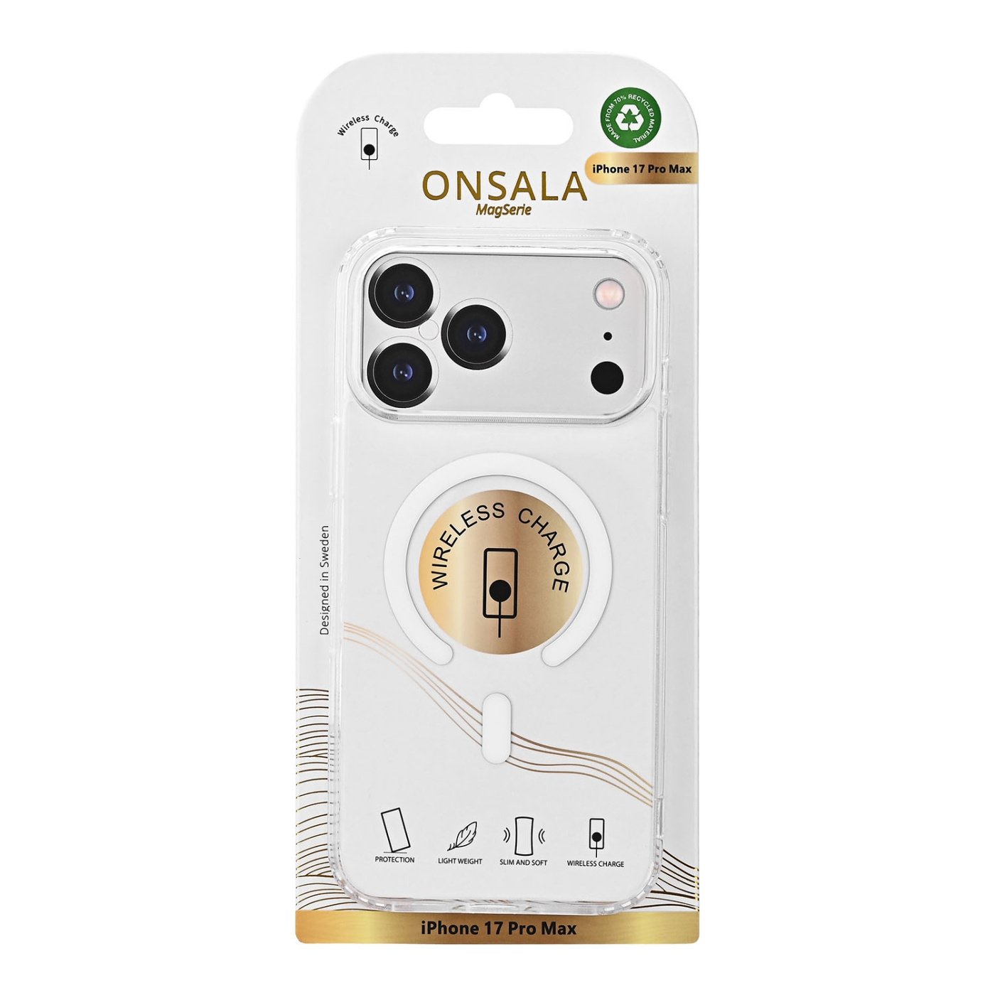 Detta mobilskal från Onsala är ett slitstarkt skal med en transparent färg som inte bara skyddar utan även låter mobilen vara i fokus. Mobilskalet kommer i en minimalistisk och slimmad design och är tillverkad i greppvänliga och hållbara material. Det tåliga skalet skyddar mobilen mot stötar, repor, smuts och damm.