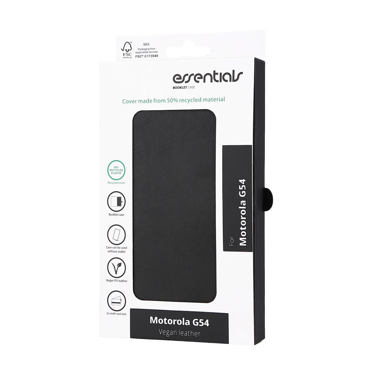 Essentials Motorola Moto G54 PU Plånboksfodral, 3 kort, Svart