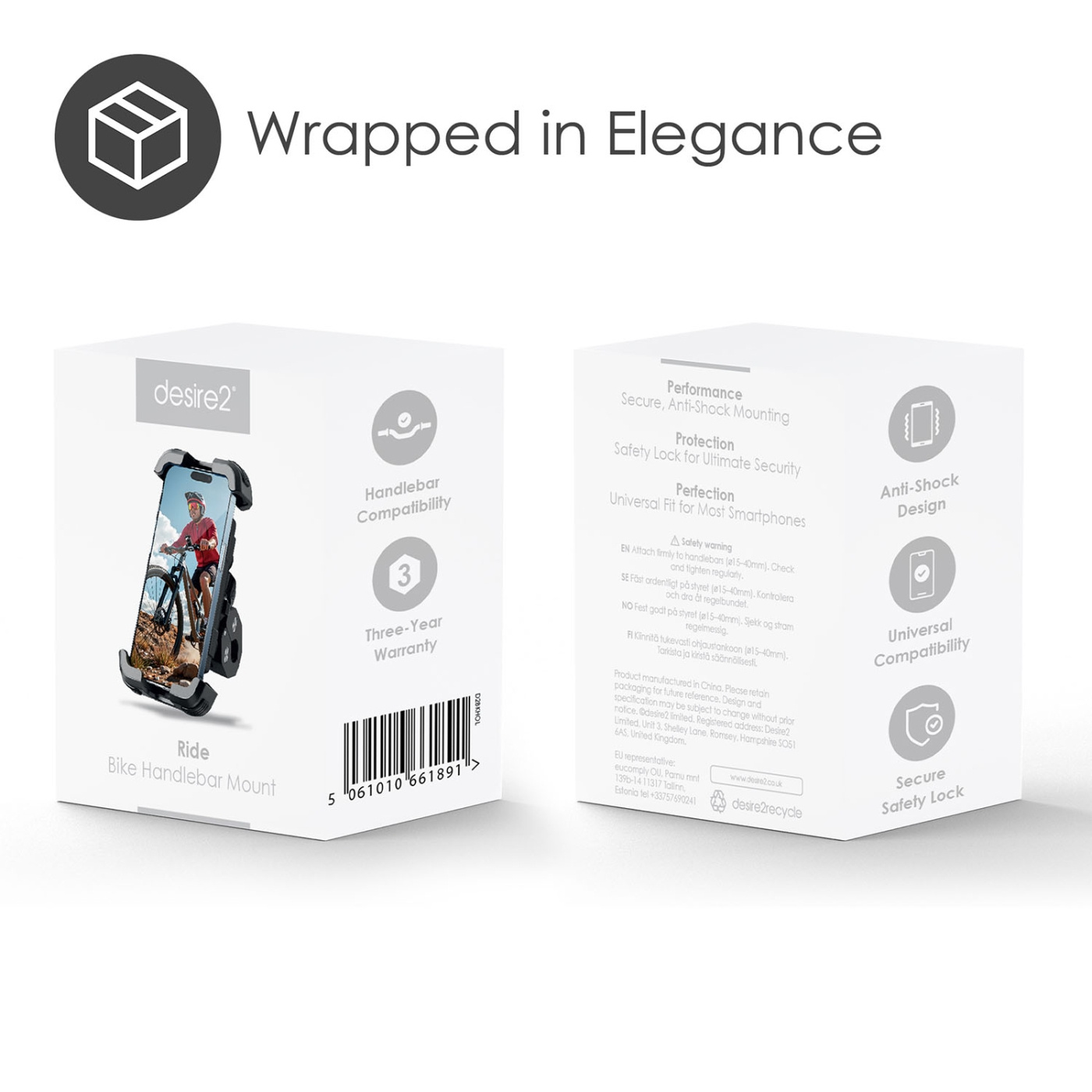 Detta cykelfäste från Desire2 ger ett säkert, stötdämpande skydd för din enhet.