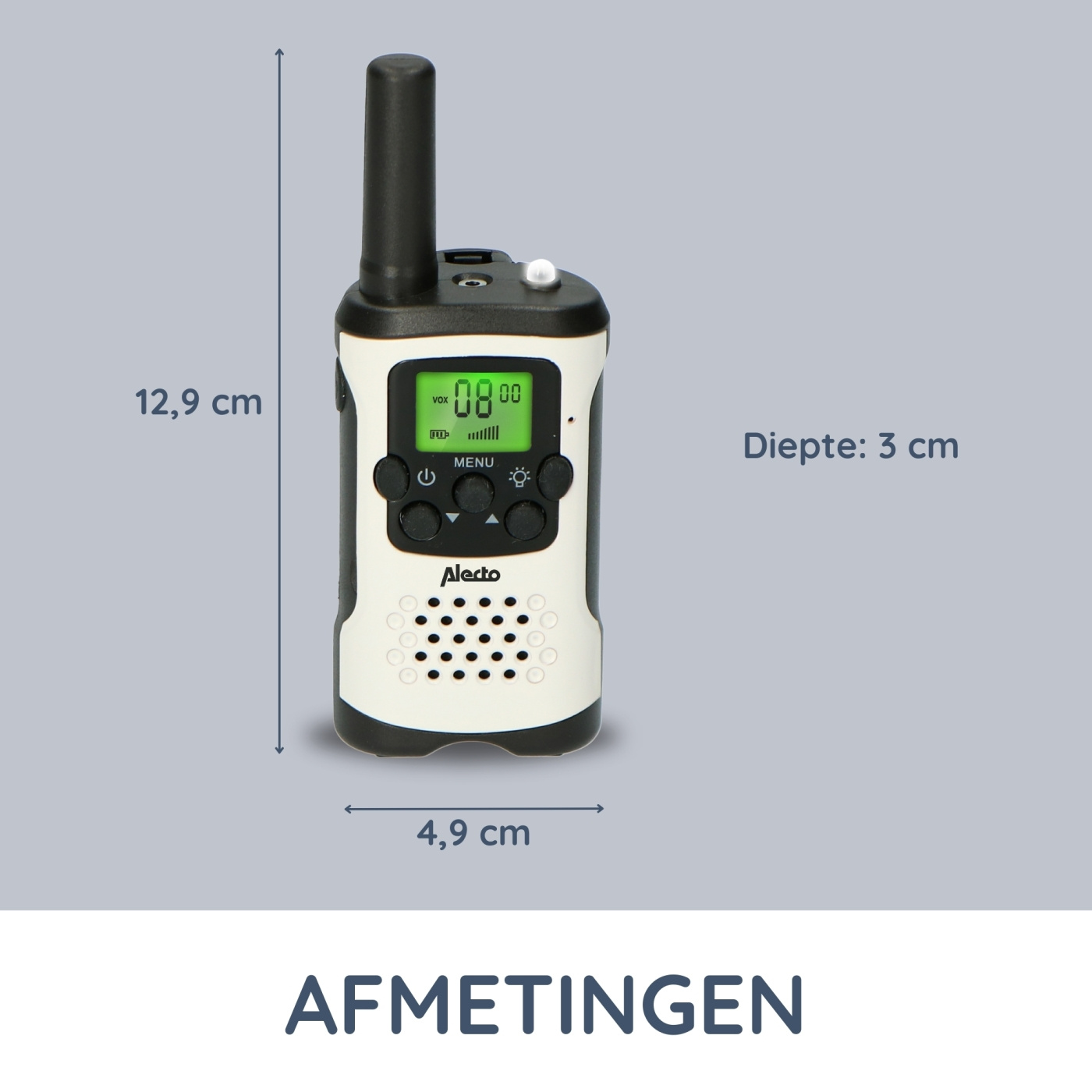 Med dessa slitstarka walkie-talkies för utomhusbruk kan ni hålla kontakten med varandra under varje aktivitet, och det helt gratis. Detta set är kompakt och har ett bältesklämma. Walkie-talkies använder 8 kanaler och söker automatiskt efter tillgängliga kanaler. Det är också superpraktiskt att den här uppsättningen kan användas handsfree i kombination med Alecto FRH-10 headset. Detta gör användningen av walkie-talkies laglig och säker under körning.