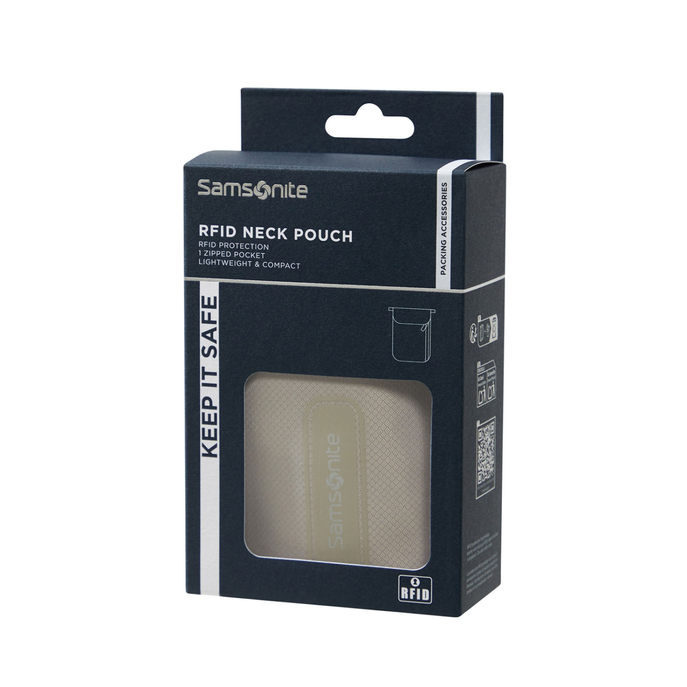 En säker och diskret halsväska från Samsonite med RFID-skydd.
