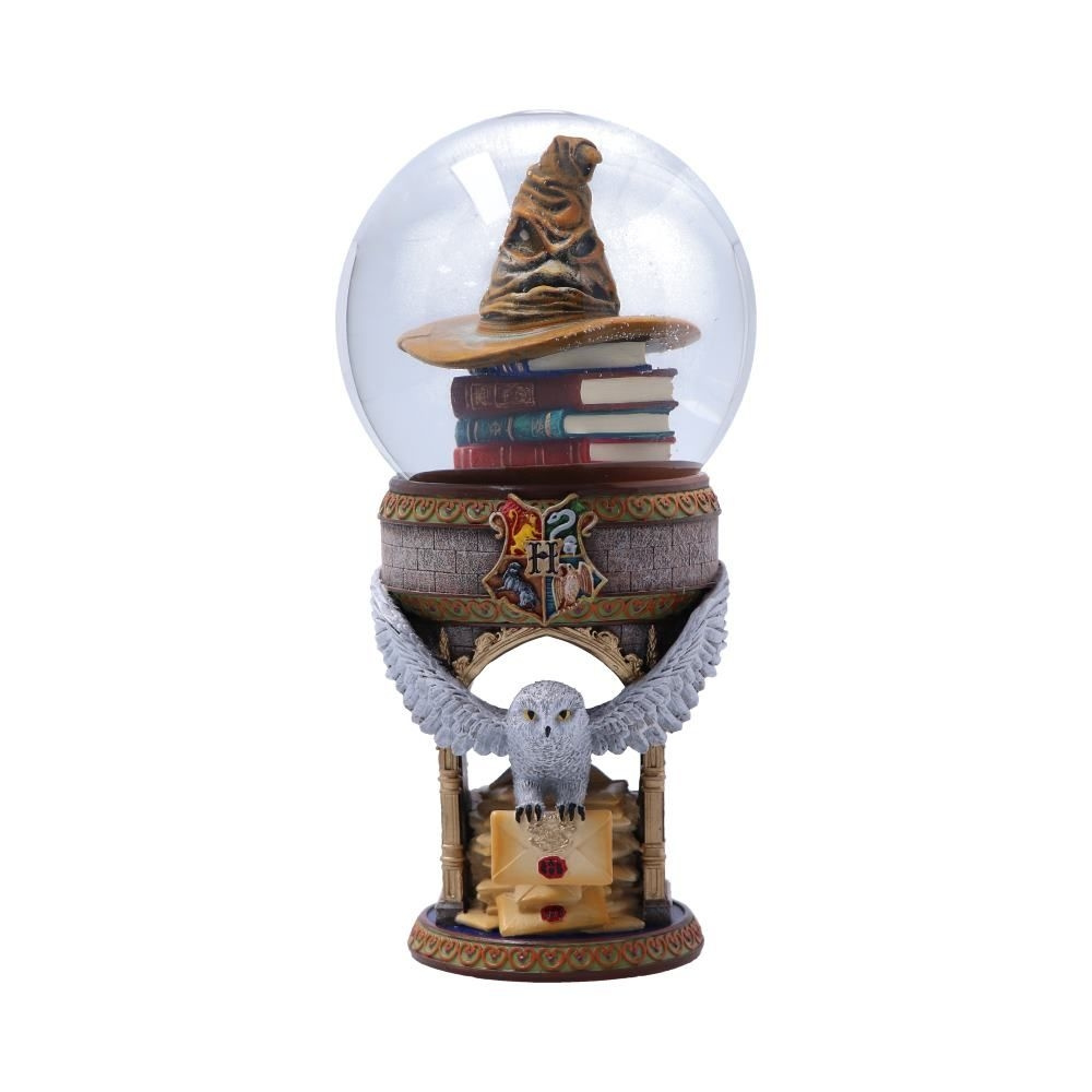 Upptäck trollkarlsvärlden med den officiellt licensierade Harry Potter Första dagen på Hogwarts snöglob. Med Hedwig, Harry Potter's husdjur Snowy Owl, som griper tag i ett Hogwarts-antagningsbrev. Inuti globen, på toppen av en hög med trollformler, sitter den berömda sorteringshatten som sorterar alla nya studenter i sina hus. Gjuten i det finaste hartset med en glasglob, denna bit har blivit skickligt handmålad och är perfekt för alla häxor, trollkarlar eller mugglare.