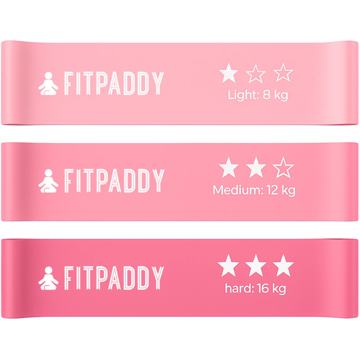 Med tre motståndsnivåer i en stilren rosa färg får du variation för att träna hela kroppen – från ben, rumpa och lår till armar, axlar och core.